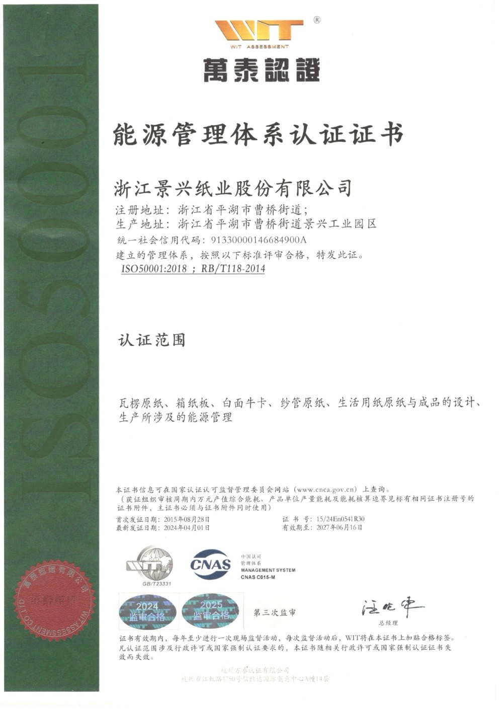 GB/T23331能源管理体系认证证书中文