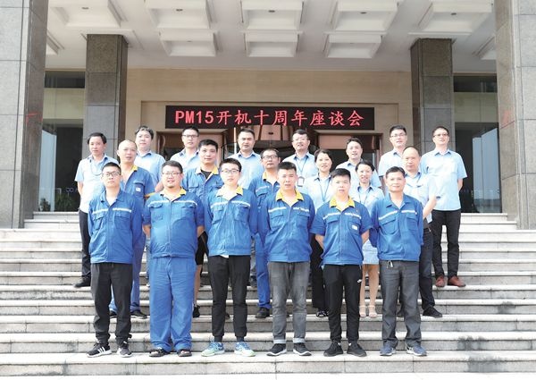 7 月21 日下午,在人力资源部及PM15 共同策划下,PM15 开机十周年座谈会在研发大楼707 会议室如期举行。总经理王志明、总经理助理鲁富贵等出席座谈会,在该机台服务十年以上的员工代表参加会议。