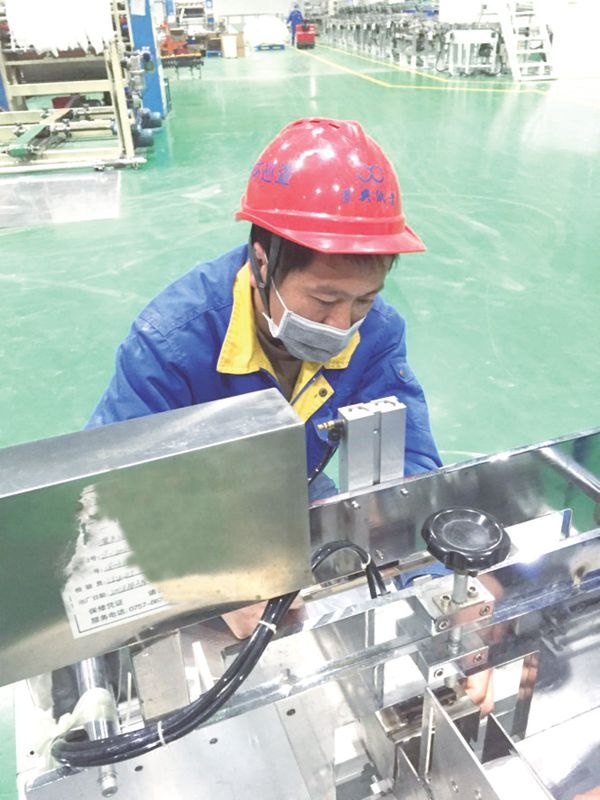 葛荣华:2004 年5 月5 日,我进入公司参加工作,当时正是PM13 项目筹建,我主要负责现场安全巡查;随着项目推进和设备到位,我开始协助安装公司进行设备安装;投产后我担任制浆段常日班机械班长;2011 年11 月,我通过竞聘成为一名设备技术员;2012 年10 月因工作需要,我被调入生活用纸事业部,且派外到广州宝索厂家参加为期一周的现场培训学习,回来后参与加工车间设备安装调试以及负责日常设备维护保养工作;2015 年初,随着造纸生产线的陆续安装投产以及加工车间的整体搬迁,我也积极参与其中,并担任技术员,负责设备技术管理工作;2019 年被升任为造纸部机械主管;2020 年成为造纸部设备副主任。目前工作主要涉及日常检查(设备隐患排查及跑冒滴漏优化等)、设备疑难问题工作指导、设备改进、零部件测绘/申报/验收、备品备件管理、内部培训等。